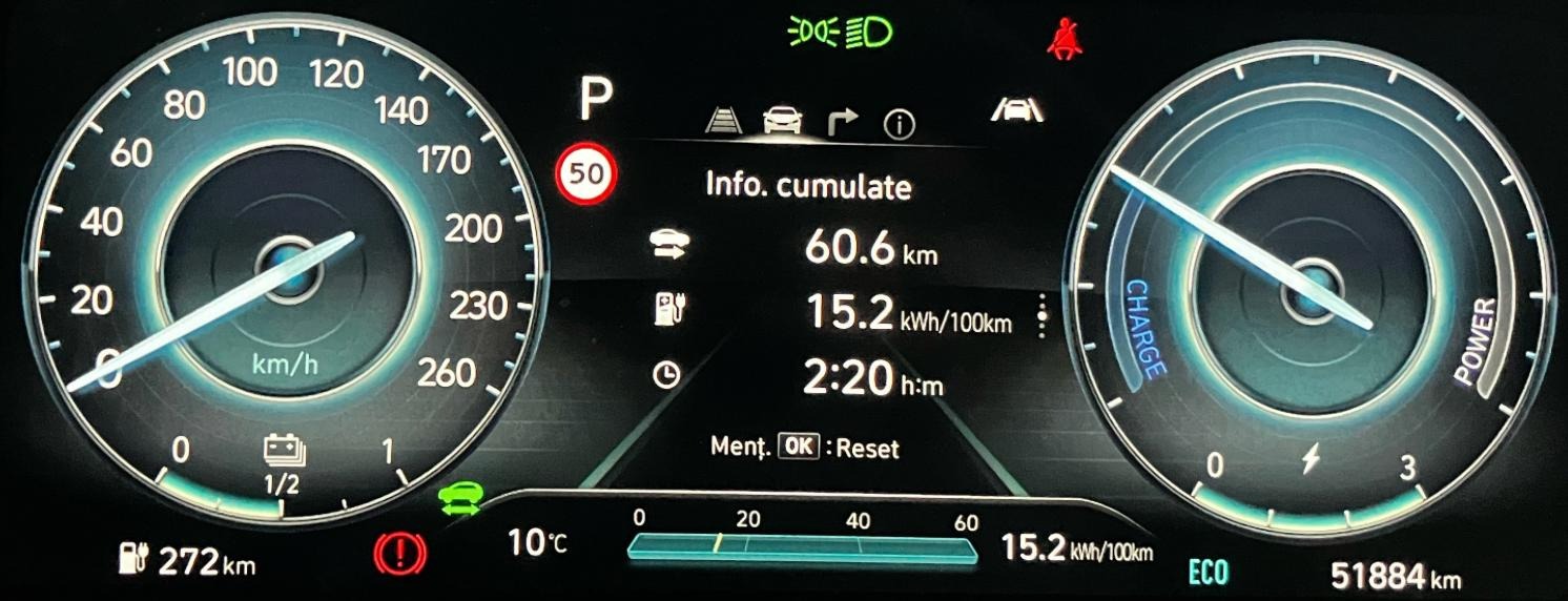 Vorbim de 51.884 km monitorizați în cei aproape 2 ani de utilizare a Konei și să ne reamintim că Dani a făcut tranziția de la Spring. Acest lucru se transpune într-o medie de consum de 13.6 kWh/100 km. Or fi #konițele eficiente, dar au nevoie și de o talpă fină pentru o medie așa bună.