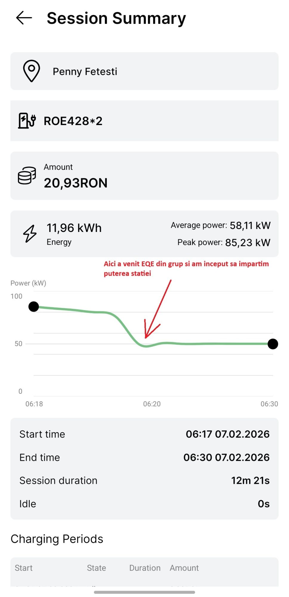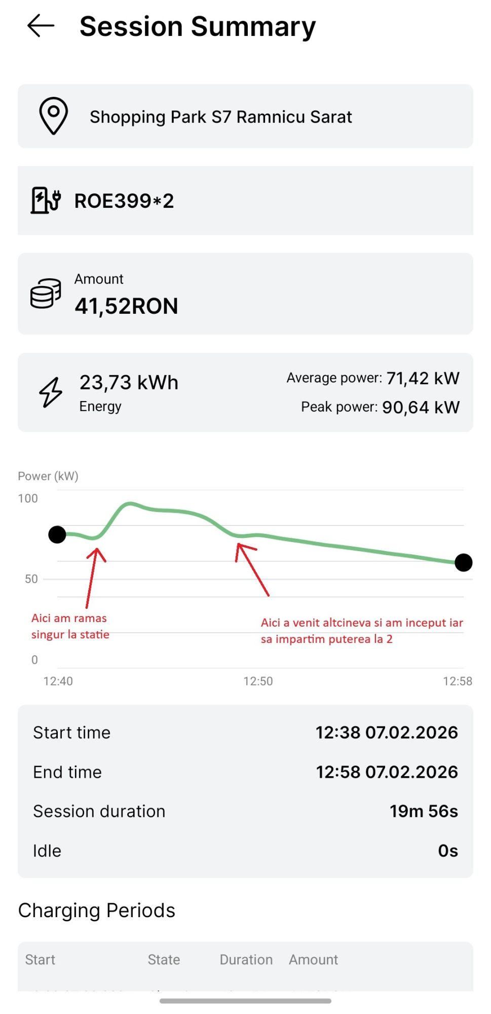 Cu 37 de electrice plecate în același timp, câteva întârzieri au fost inevitabile. Eu am prins 5 minute de așteptare, dar am avut multe sesiuni de incarcare partajate sau am folosit temporar stații de 50 kW pana se elibera statia „mare”. Interesant cum ceea ce acum câțiva ani părea „rapid” este astăzi doar o soluție de avarie.