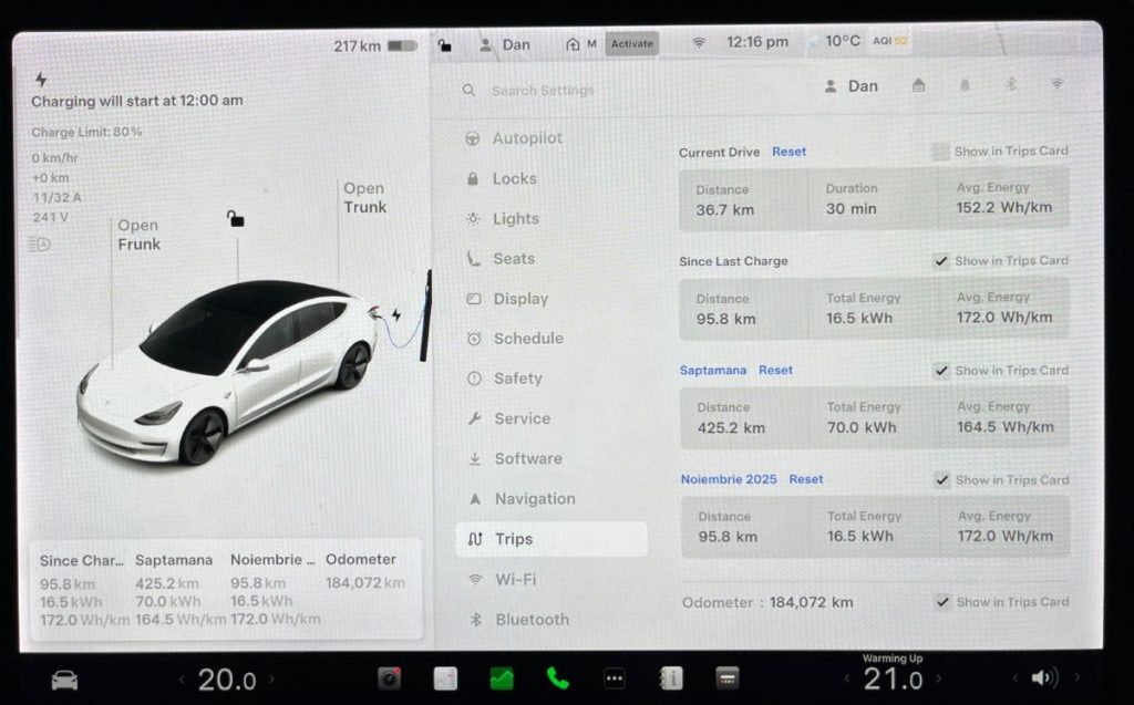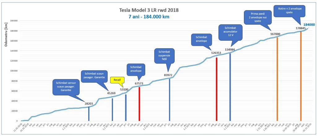 In 2 noiembrie veterana TM 3 (Model 3 LR rwd) a împlinit 7 ani de la preluare și indică la bord 184.000 km, parcurși pe două continente, după cum ați mai aflat din numeroase articole.