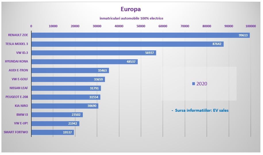 Clasamentul european pentru modele 100% electrice