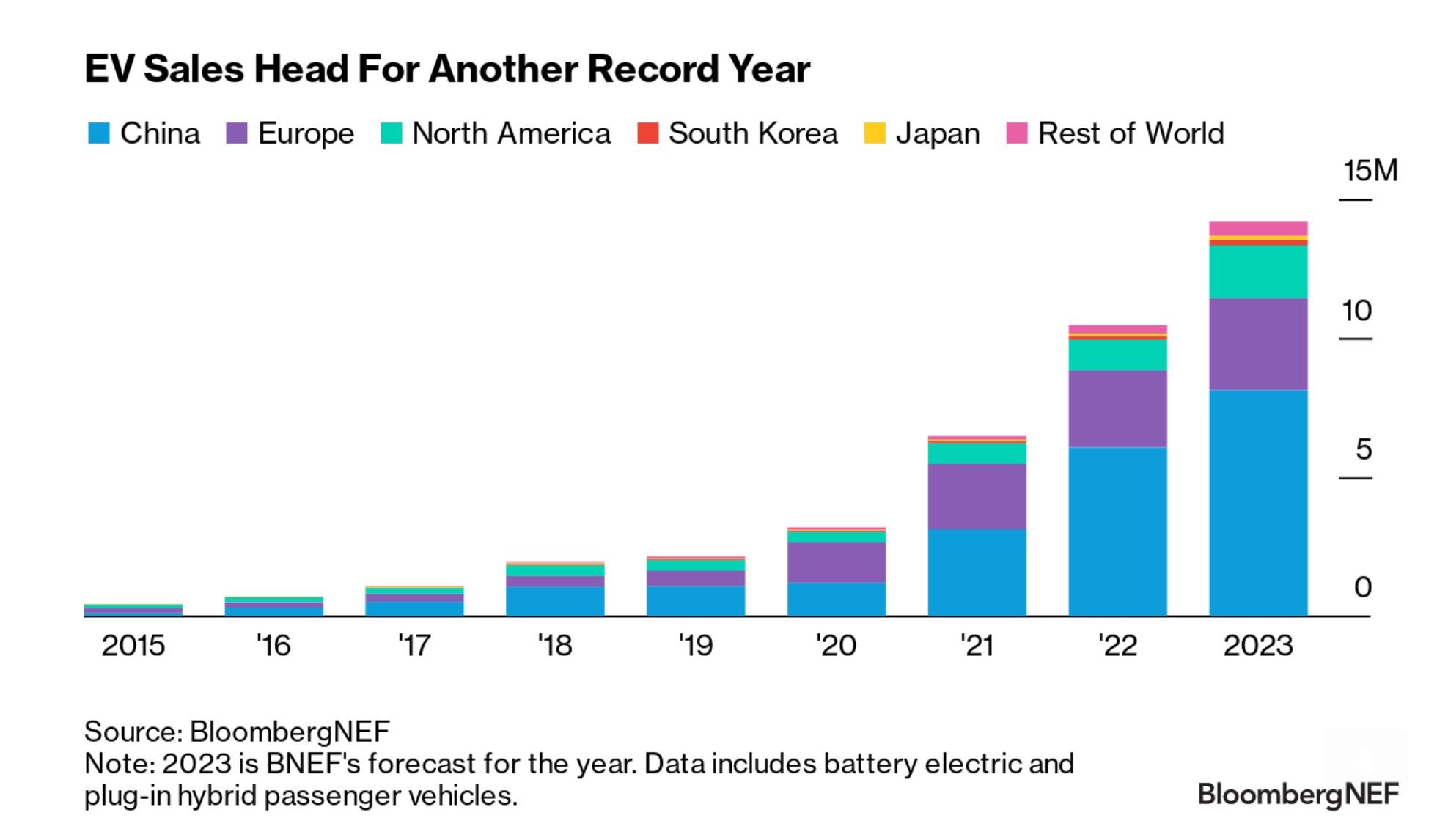 Cifrele publicate de BNEF – Bloomberg New Energy Finance spun o cu totul altă poveste decât titlurile păguboase utilizate de electro-sceptici. Înmatriculările de autovehicule electrice pe glob au crescut în primele nouă luni din 2023, față de aceeași perioadă de anul trecut.