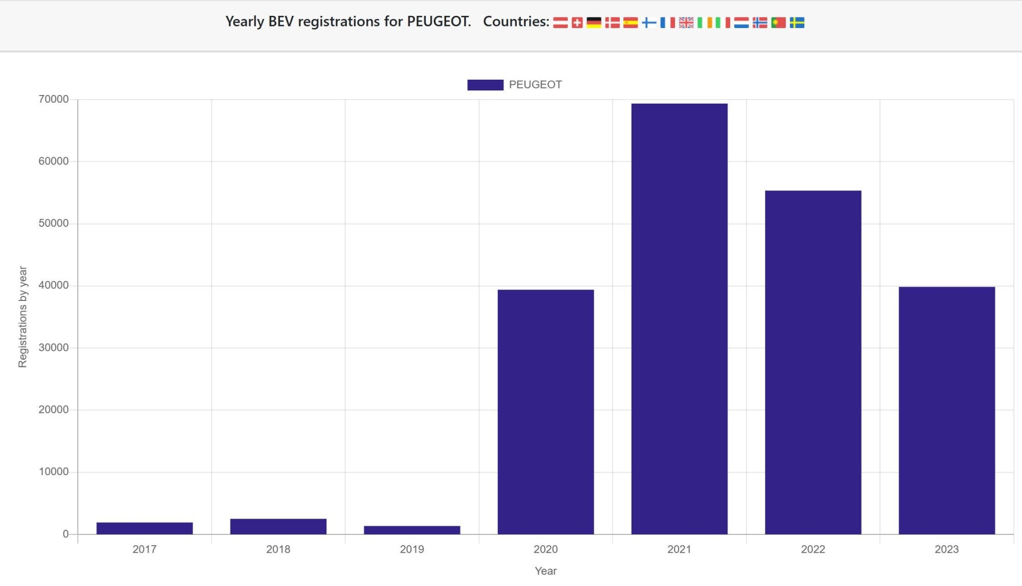Din baza de date pusă la dispoziție de EU EVs am ales câte trei exemple pentru fiecare categorie de producători, care după nouă luni din 2023 au: