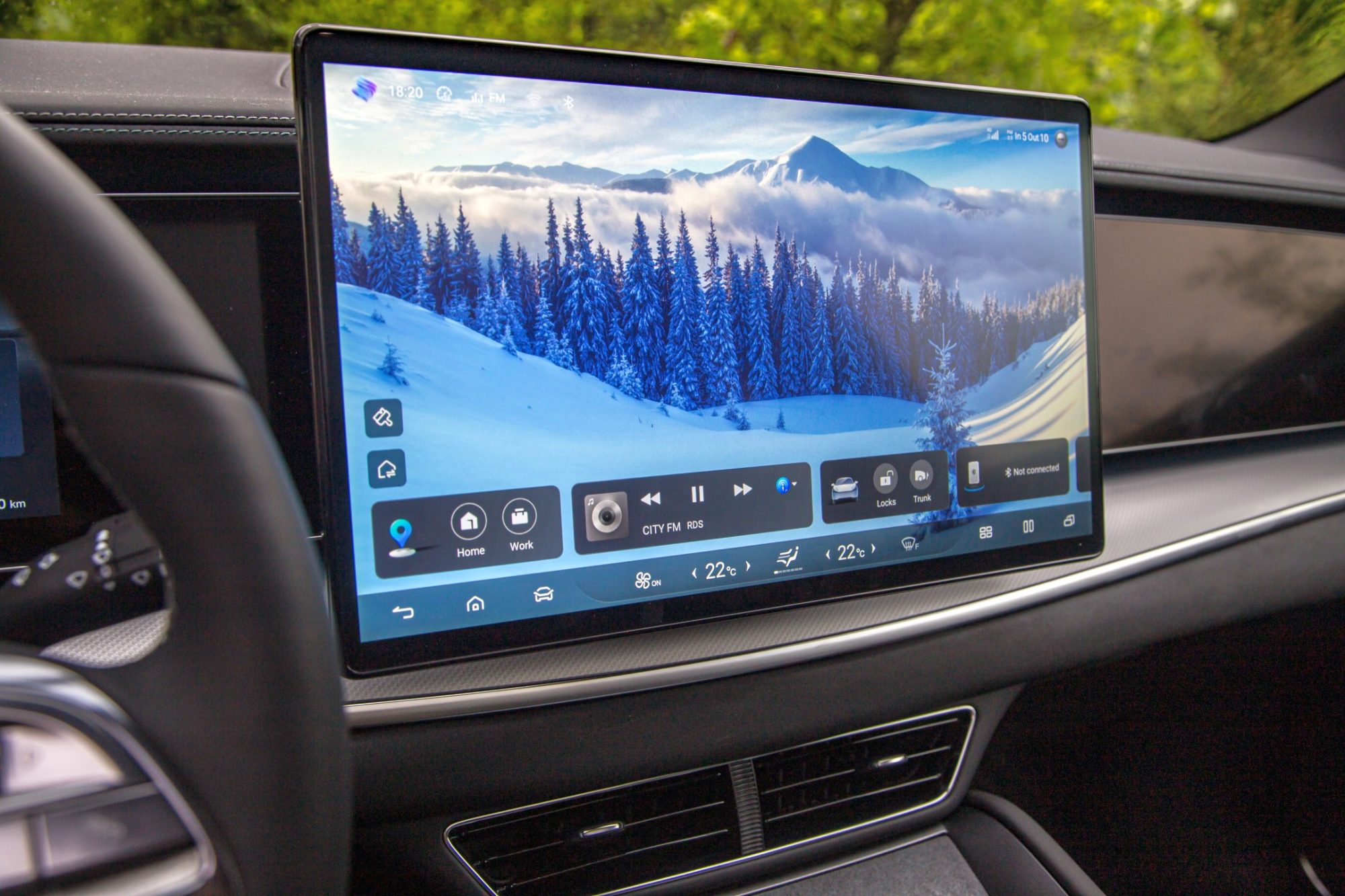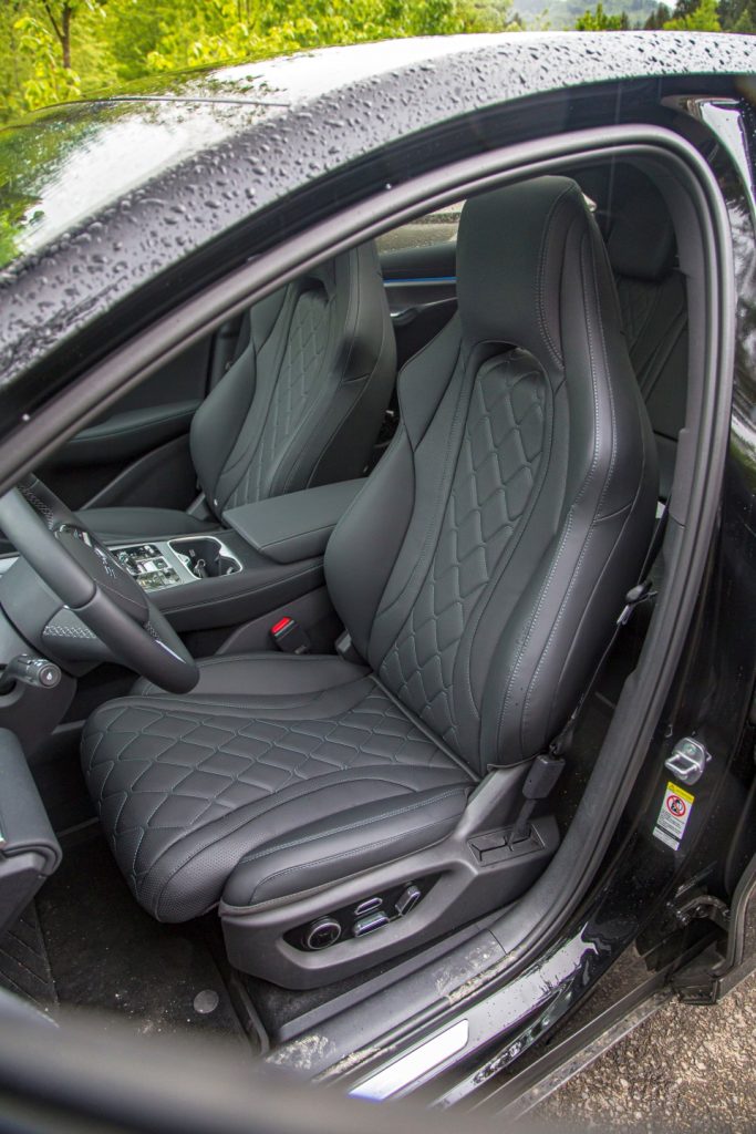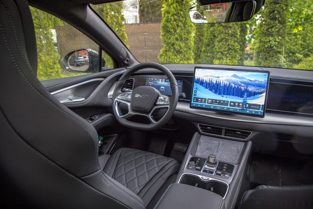Scaunele lucrate bine, încălzite, ventilate, cu o buna susținere laterala, interiorul cu un mixt bun între comenzi directe cu butoane și un ecran generos de 15.6”, pe care îl poți roti 90° (vertical sau orizontal) așa cum îți folosește cel mai bine.