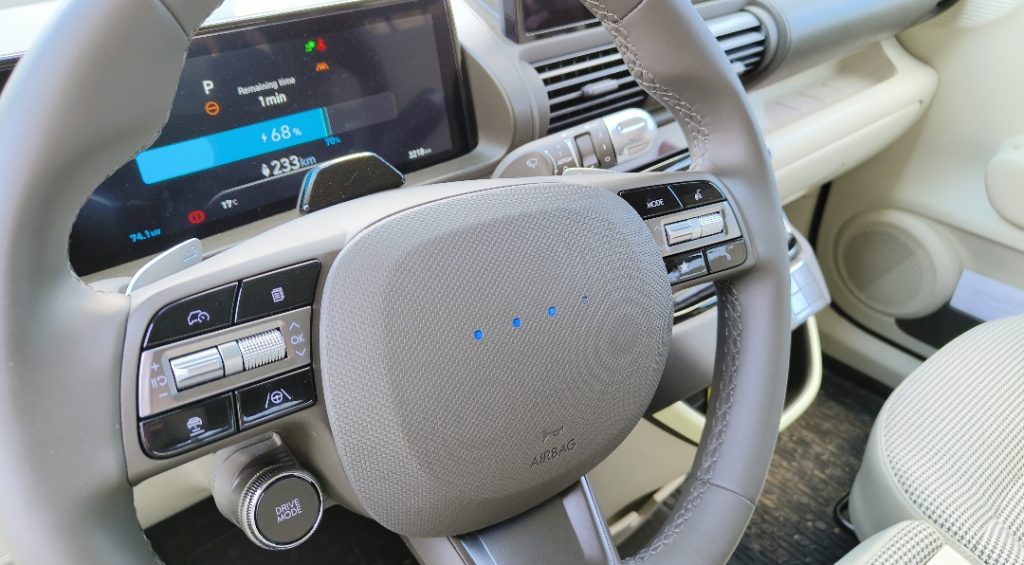 Sunt și multe avantaje când ai un motor ceva mai cumințel într-o mașină electrică. Și vă dau un exemplu, ați mers cu o mașină puternică (peste 200 CP) pe un drum denivelat? Inevitabil din moment în moment piciorul se va mișca 2-3mm pe pedala de accelerație, iar atunci atât tu, dar mai ales pasagerii, veți simți șocul cuplului electric – instant. Aici, Insterul te iartă, orice mișcare bruscă pe accelerație este transpusă într-o accelerație consistentă, dar fără acel zvâc punctual nedorit.
