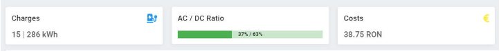 Încărcări: 748.84 kWh = 14xAC 413.95 kWh + 13xDC 334.89 kWh