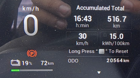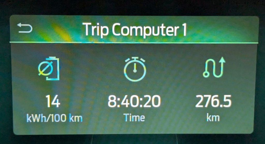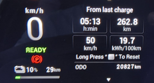 - Consum mediu: 14 kWh/100km (București – Câmpina 13 kWh/100km, Câmpina – București 14 kWh/100km, cu 5 grade temperatura exterioară la plecare spre București),