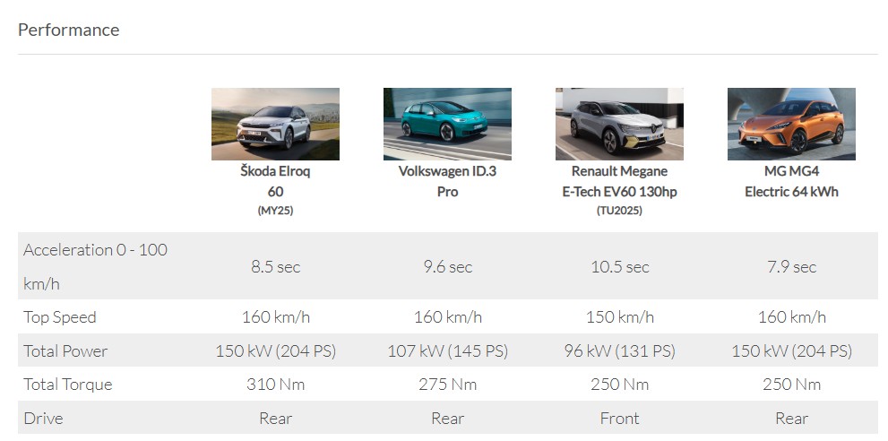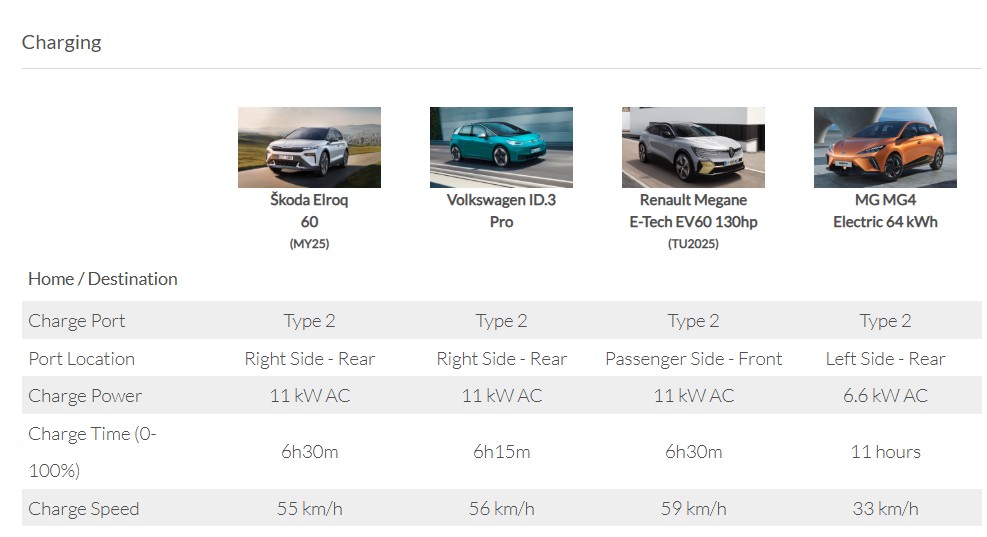 Specificațiile indică o putere de încărcare mai mare decât ID.3 și Megane, care pune Elroq în aceeași ligă cu MG 4.