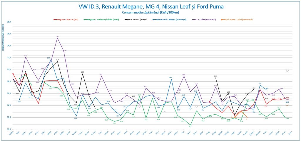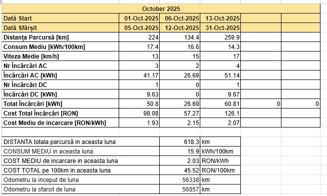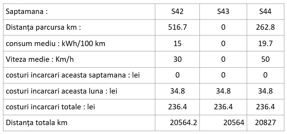 - 27-31 Oct: 138 km cu un consum mediu de16,2 kWh/100km;