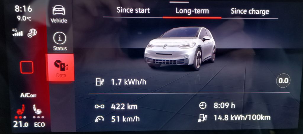 - 1-2 Noi: 422 km cu un consum mediu de 14,8 kWh/100km.