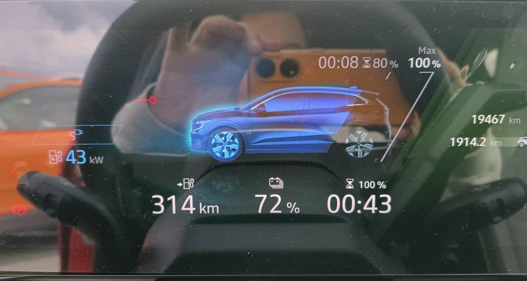 Pe drumul de Cluj Napoca am oprit la o încărcare ce m-a „ademenit” încă de la Deva, la Luduș deși nu era nevoie. Dar cum să treci pe lângă un preț foarte bun de 85 de bani pe kilowattoră. Am încărcat de doar 27,3 lei și am parcurs 387 km, adică Luduș – Brâncovenești – Cluj Napoca – Deva. Bineînțeles, căldura am pornit-o după ce am plecat din Cluj Napoca, se lăsase frigul la 9°C, drum doar pe DN.
