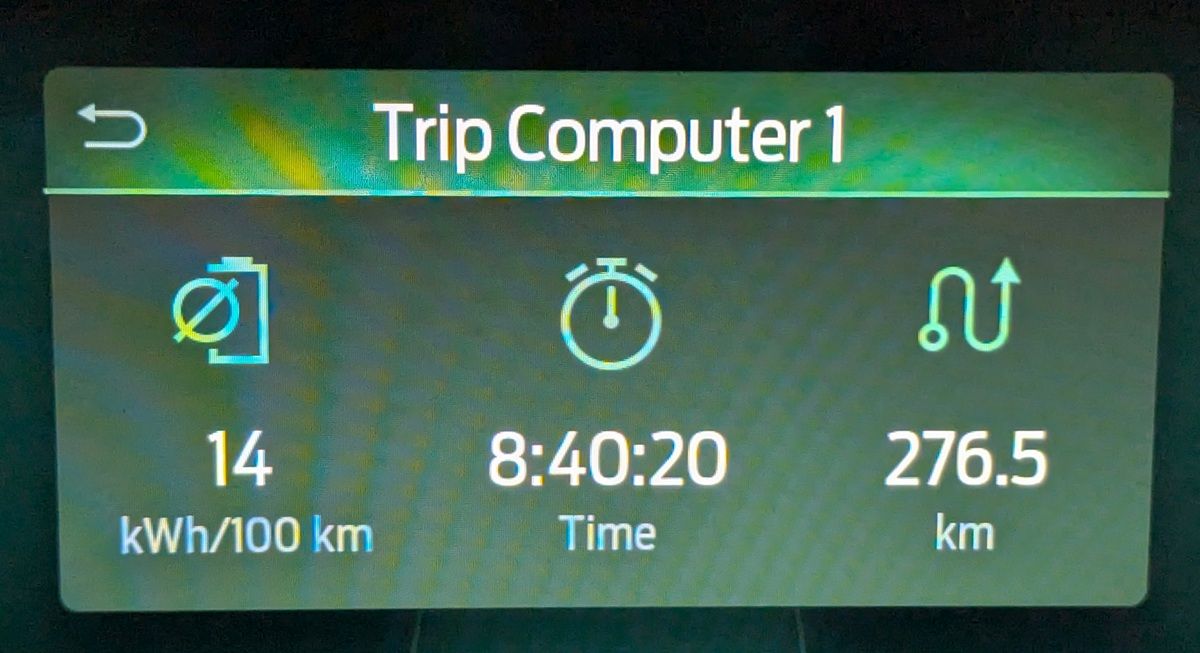 - Consum mediu: 14 kWh/100km (București – Câmpina 13 kWh/100km, Câmpina – București 14 kWh/100km, cu 5 grade temperatura exterioară la plecare spre București),