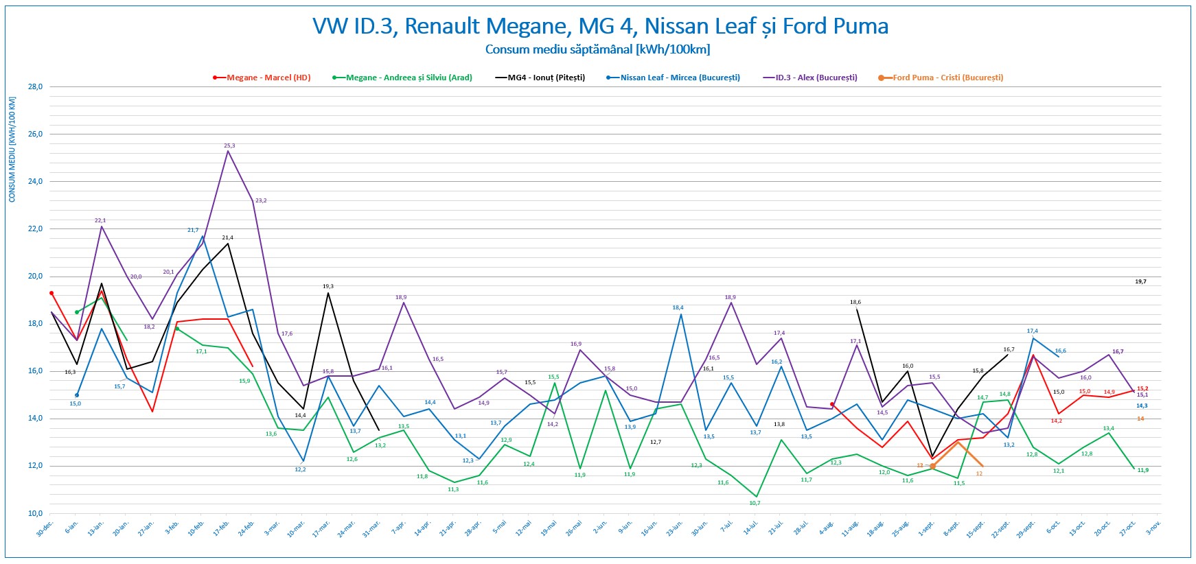 - 27-31 Oct: 138 km cu un consum mediu de16,2 kWh/100km;