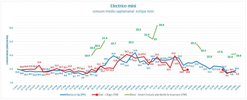 Cu mențiunea că valorile de „consum” pentru Smart includ și pierderile de încărcare, cele trei automobile electrice mini, urmărite pe parcursul ultimului an în cadrul proiectului Electromobilitate, au fost foarte grijulii cu buzunarul proprietarilor.