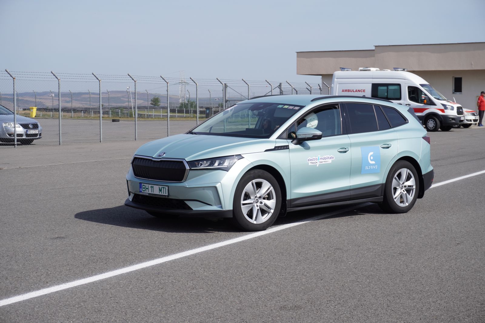 Colegii noștri oferă plimbări cu electricele pe circuit celor interesați de dinamica unor EV-uri atât de diferite cum sunt Enyaq, Explorer, Puma, etc.