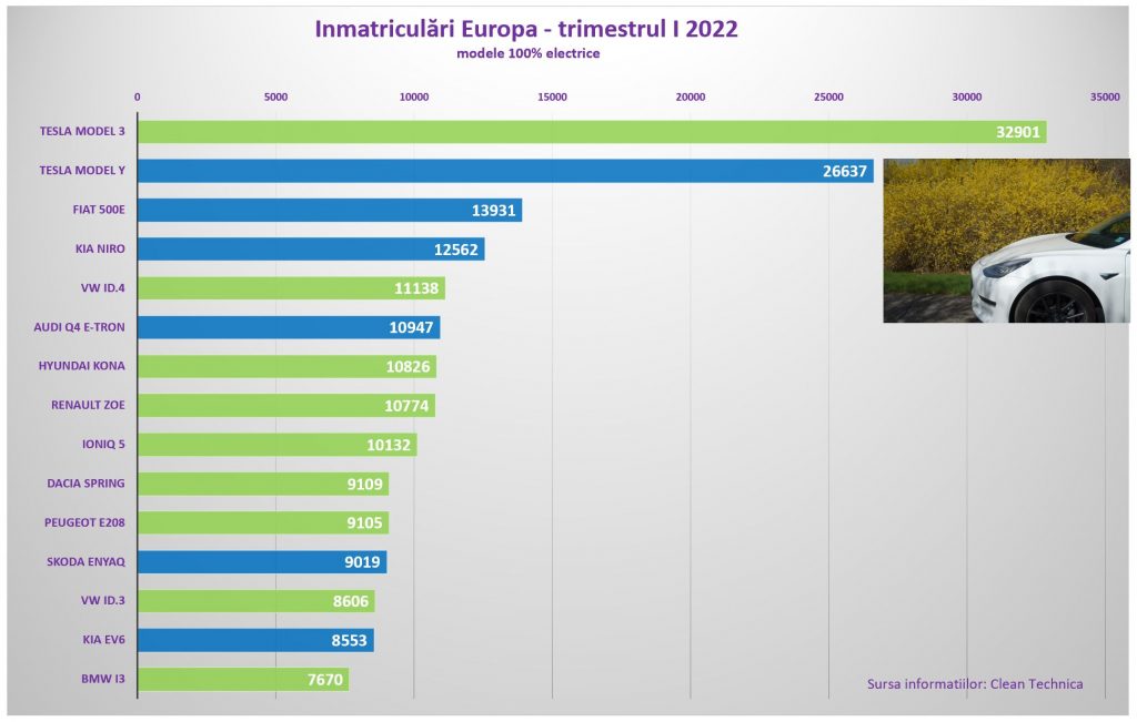 De îndată ce Jose Pontes a publicat rezultatele europene din primul trimestru în Clean Technica, am extras Top 15 pentru modele 100% electrice.