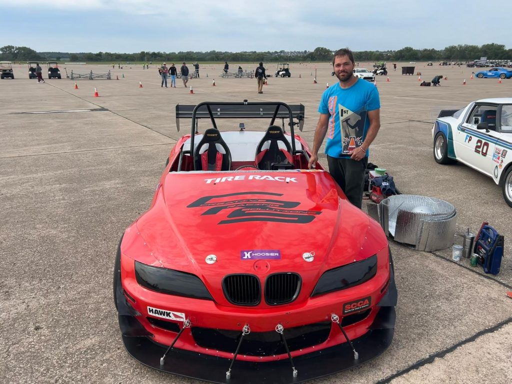 L-am însoțit la multe etape de slalom, unde concurează împreună cu soția, cu un prototip dezvoltat dintr-un BMW Z3 în propriul atelier, specializat pentru mașini de curse de tot felul. Din păcate nu am fost alături de ei luna trecută, când a câștigat primul titlu național (în categoria sa) la finala din Nebraska.