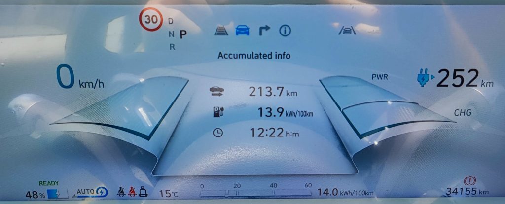 De când dețin mașina aceasta a fost cea mai lungă perioadă cu o singură încărcare, 12 zile de la 100% la 8%. Nu am reușit să ajung cu ea până duminică, vineri noaptea deja a fost nevoie de o nouă încărcare, dar oricum eu sunt foarte mulțumit că am reușit să o trag până vineri cu un ”plin”.