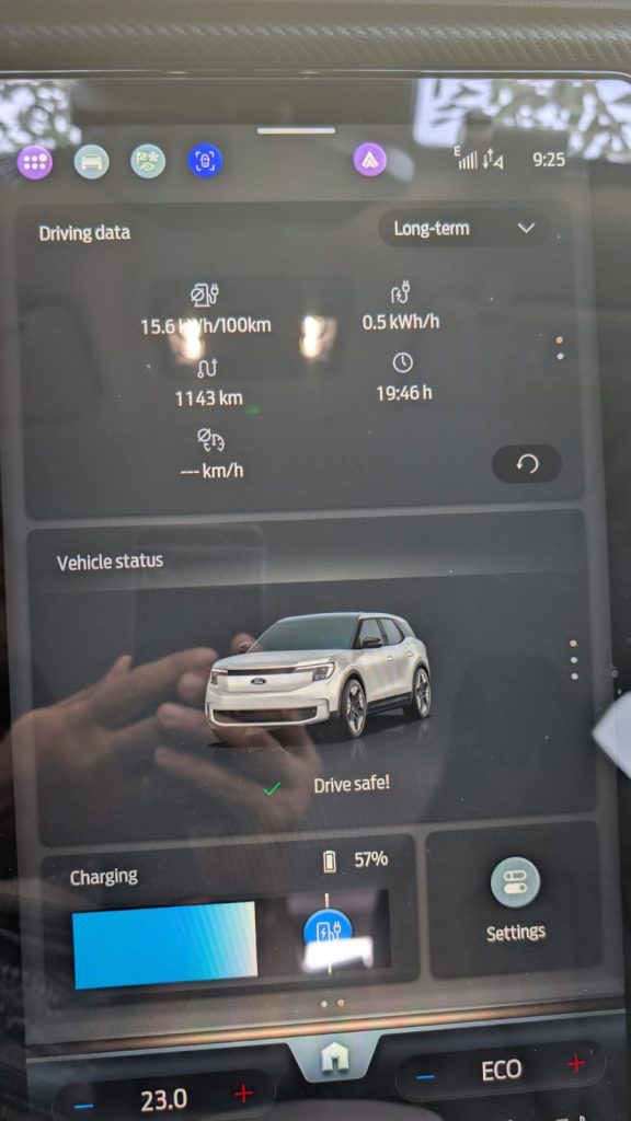 Sâmbătă am făcut un drum până la Cluj, să testez mașina și pe autostradă desigur. De aici și consumul mai ridicat, am mers cu 130+ km/h toată distanța, să îmi fac o idee de consum. Surprinzător, mașina nu e așa însetată pe cum credeam. Am încărcat la Cluj cât timp am fost în mall. Nu era neapărată nevoie, dar am zis de ce nu?