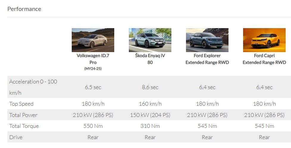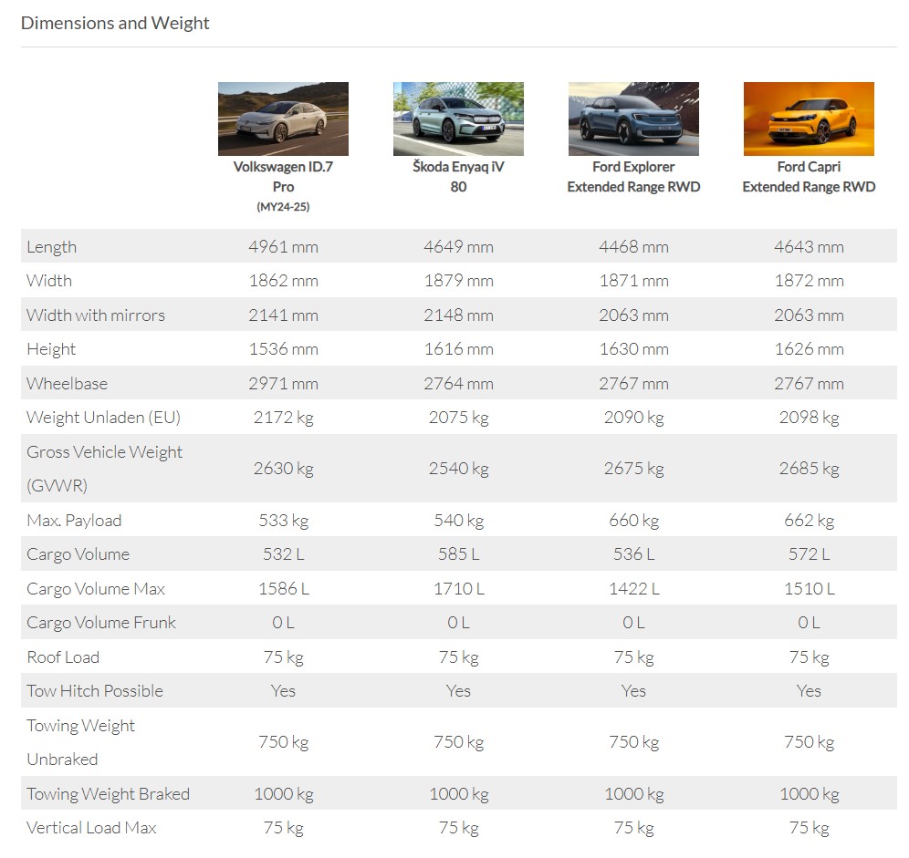 Comparație MEB – ID.7, Skoda Enyaq, Ford Explorer, Ford Capri