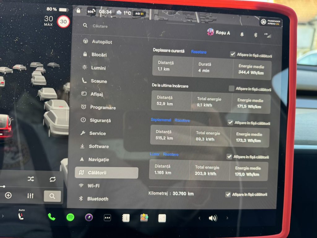 Așa a arătat săptămâna trecută pentru „Roșia” sau „Tesluța” noastră. A fost o săptămână cu plimbările clasice până la serviciu, sală, magazine și un drum până la aeroportul din Cluj, din nou.