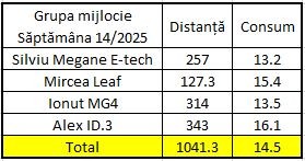 În săptămâna 14, am avut parte de momente când am pornit AC-ul, dar și momente când am pompat căldură în habitaclu, dar consumul s-a menținut în întreaga echipă la niște valori medii, în ciuda parcursului fragmentat.