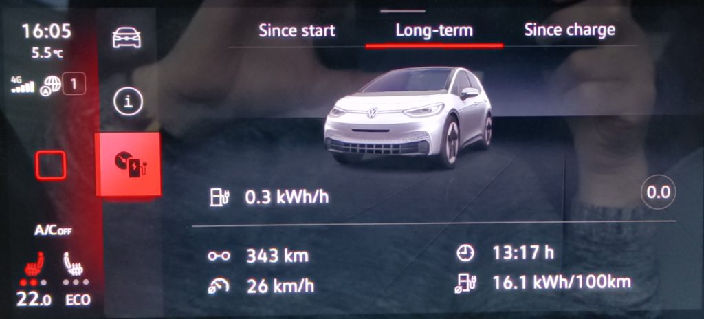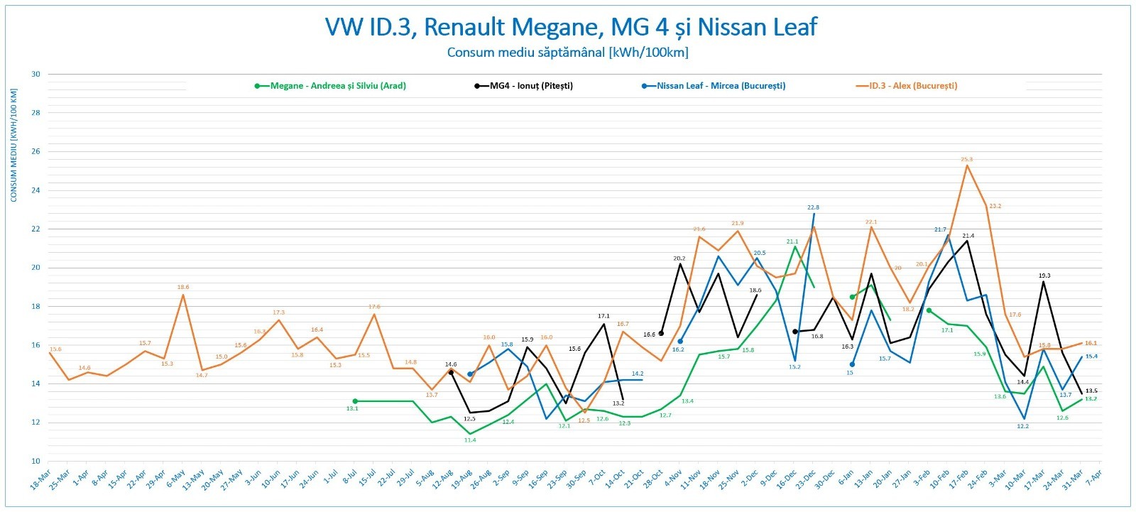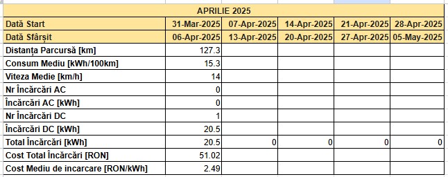 În săptămâna 1-6 aprilie am parcurs 343 km cu un consum mediu de 16.1 kWh/100km.