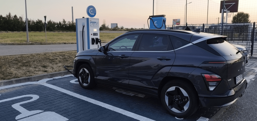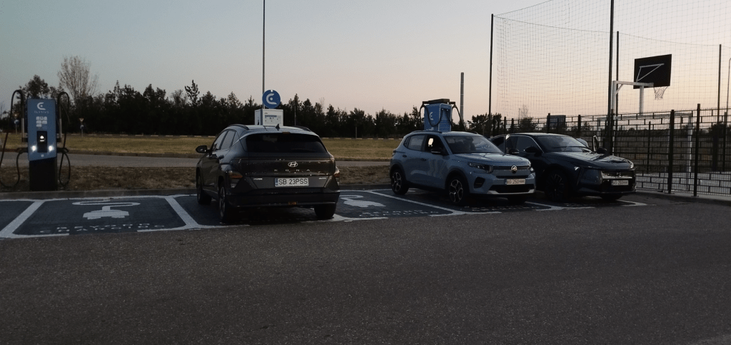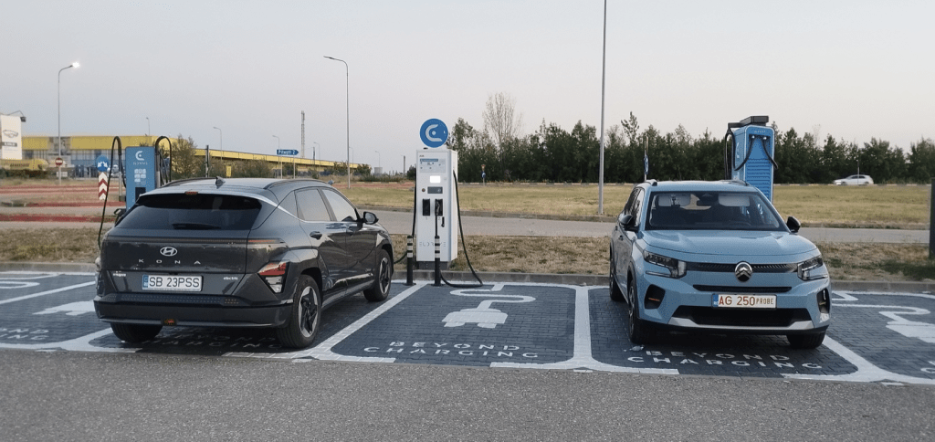 ABRP îmi spunea să intru în București să încarc vreo 35 minute, dar pentru că am vrut să evit Bucureștiul, am ales să fac 2 încărcări: una la Lehliu și una mai scurta la Supernova Pitești. S-a dovedit de fiecare dată că daca ai copii mulți după tine stai mai mult la încărcat decât e necesar. (33 minute + 19 min., când puteam liniștit pleca după 20 min + 9 min). Așadar nu am stat după mașină să încarce, a stat ea după noi.