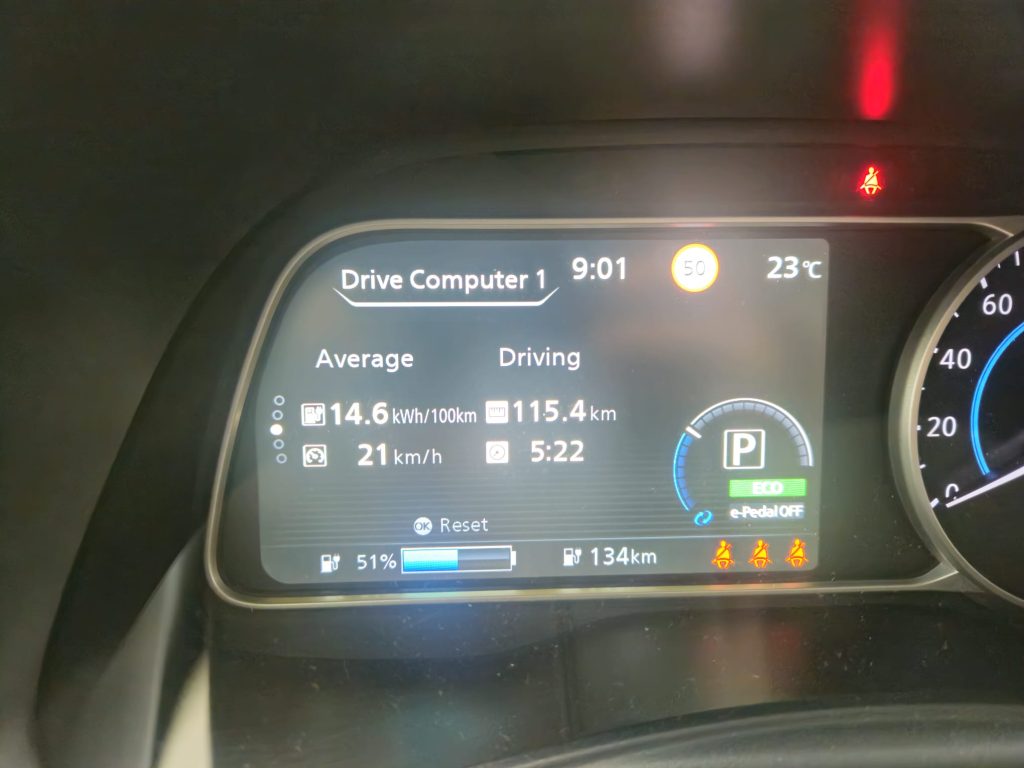 În săptămâna ce a trecut Nissan Leaf nu s-a deplasat foarte mult, doar 115.4 km facuți în oraș, doar drumuri scurte. Consumul mediu este de 14.6 kWh/100km.