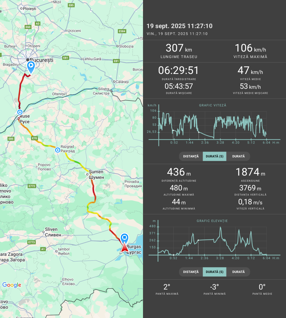 Drumul din Berceni și până în Burgas l-am făcut cu o încărcare, dar mai mult, am ajuns și cu un respectabil 23%.
