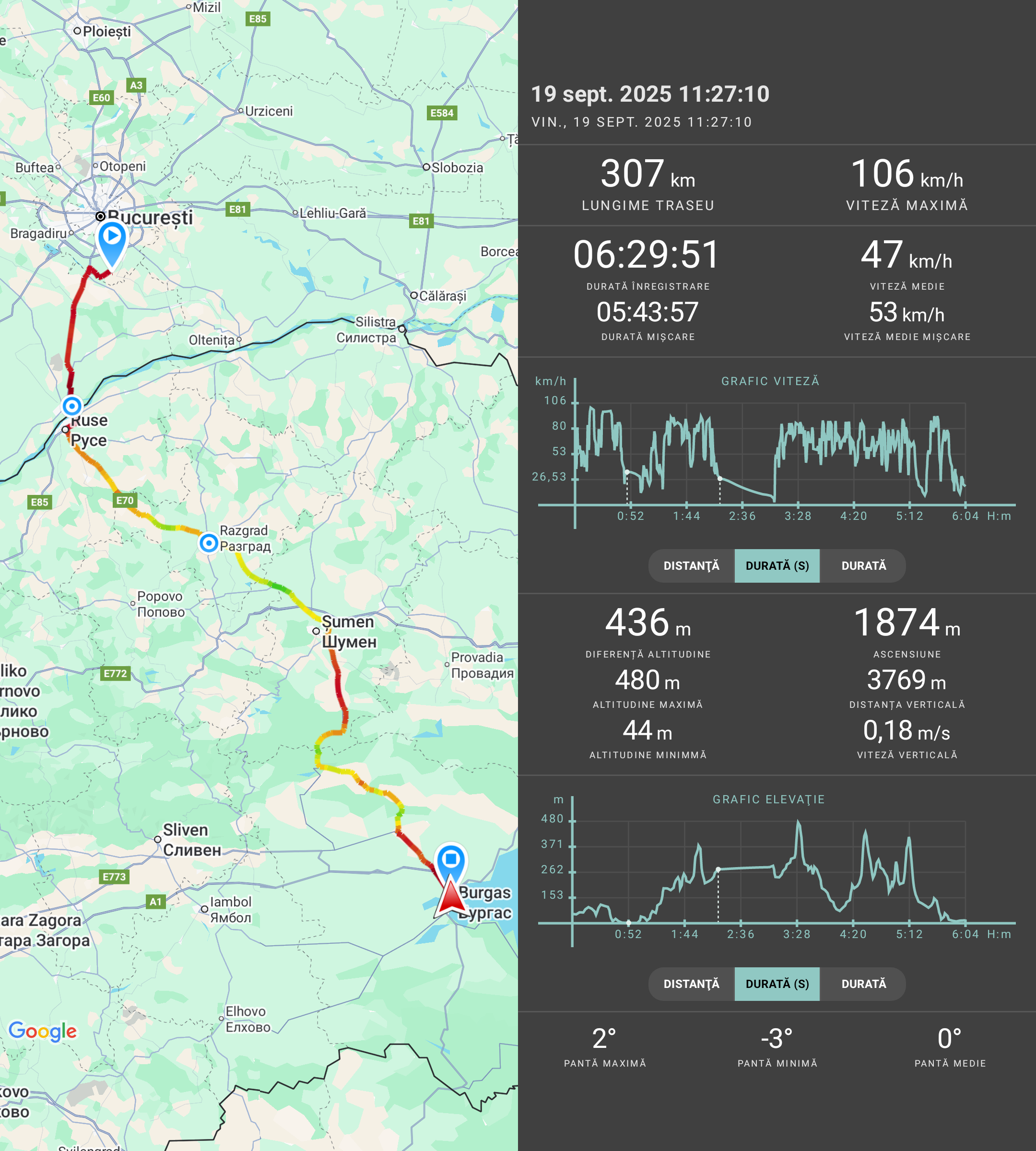 Traseul până în Burgas a presupus deplasarea exclusiv pe drumuri naționale și localități. Am rămas plăcut impresionat și de data aceasta de cât de strict respectă vecinii noștri bulgari limitele de viteză, iar drept urmare, limitatoarele de viteză – cocoașele din asfalt, erau foarte line, semn că dacă respecți limita de viteză, te respectă și autoritățile.