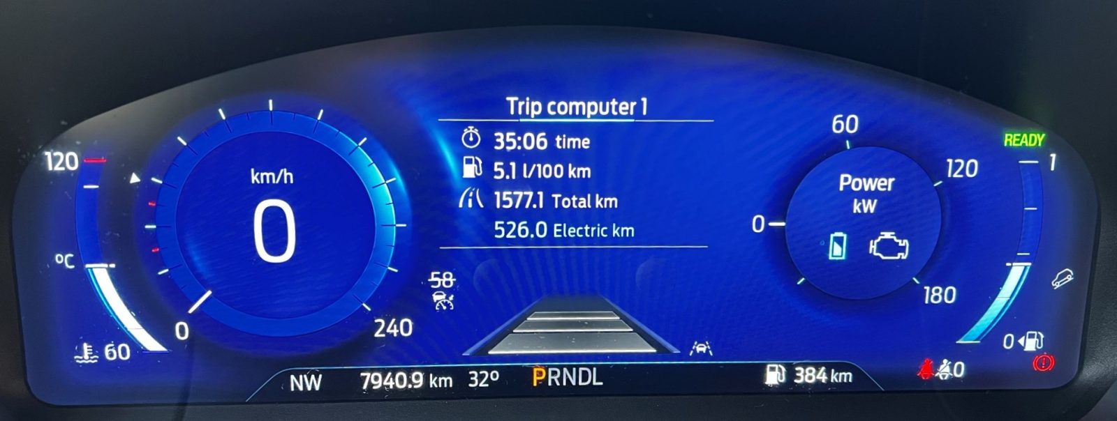 - Consum real pe baza bonurilor – 92.85 litri, 1577km = 5.88 l/100km (incl. km electrici). Excluzând km electrici – 8.83 l/100km