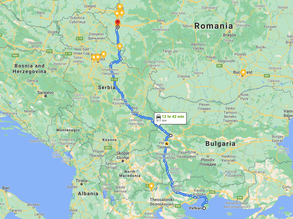 Am ajuns cu bine la Kulata dupa ce am stat doar vreo 13 minute la vama Grecia – Bulgaria. Ne asteptam sa stam mult mai mult pentru ca Grecia doar ce intrase in Zona Rosie COVID in Romania, iar cei care erau nevaccinati mai aveau doar o zi la dispozitie pentru ai intra in tara si a nu sta in carantina. N-a fost asa, am stat chiar putin la vama.