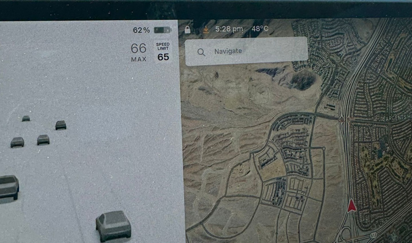 Nu este de mirare că în deșert este cald și temperaturi de peste 40o C sunt atinse în fiecare an, doar că anul acesta 45 – 46o C a devenit ”noua normalitate” de mai multe săptămâni. In aceste condiții este firesc ca o parte din energie să fie consumată pentru confortul pasagerilor, pre-condiționând mașina oriunde ar fi parcată, înainte de fiecare deplasare, pe parcursul căreia Roxana semnalează pe autostrada încinsă o temperatura de 48o C!