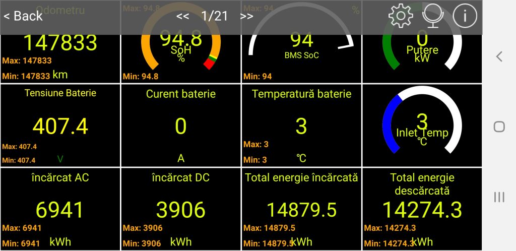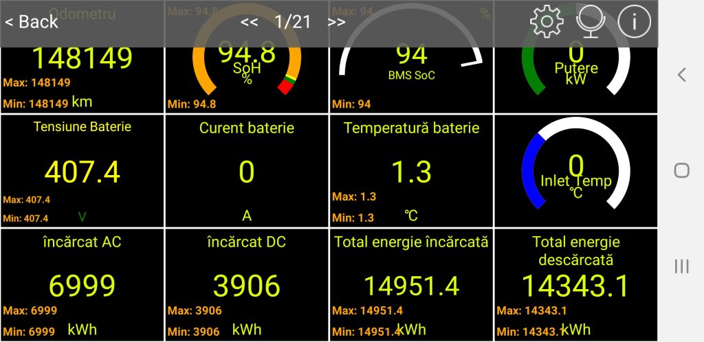 Partea bună la CarScanner e că vă interpretează atât contoarele de sarcină (Ah) cât și pe cele de putere (kWh). Din fericire contoarele de pe Kona sunt coulombo-metrice, așa că dacă le folosiți pe cele in kWh, nu trebuie să vă bateți capul cu transformări adiționale. Eu vă recomand să le folosiți pe cele in kWh întrucât verificarea cu contorul de la priză o să trebuiască să o faceți tot in kWh.