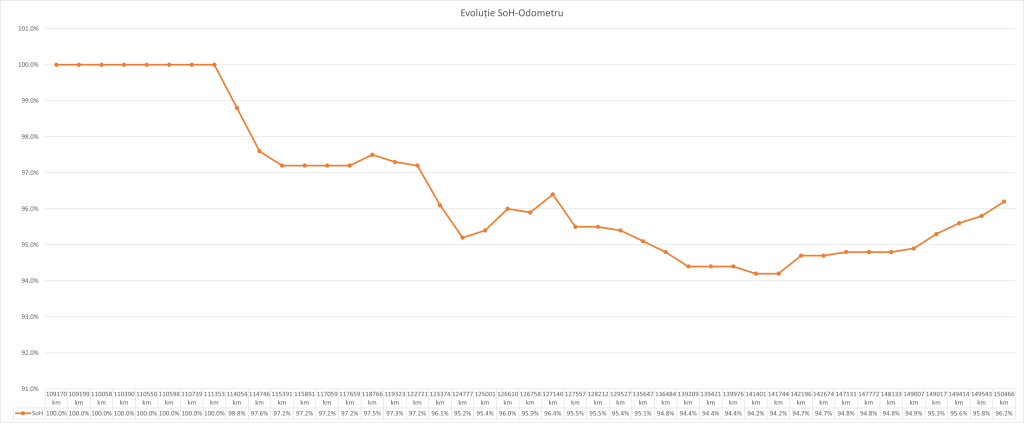 Pentru că e inconsistent și evoluează în timp. Infirm total enunțul cum că odată ce scade parametrul, drumul este ireversibil. Mai jos, puteți vedea cum a evoluat/evoluează SoH-ul la mine.