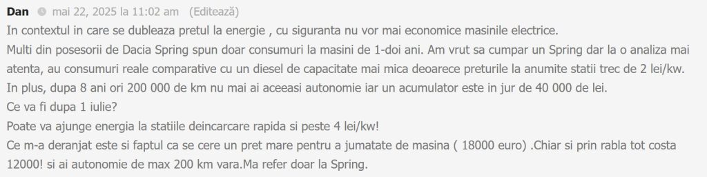 Un comentariu recent la un articol din luna august 2022, încearcă să justifice lipsa de apetit pentru achiziția unui Spring și readuce în prim plan câteva mituri care circulă online, spațiul unde poți să afirmi orice iți trece prin cap, fără nevoia de a justifica cu date sau fapte concrete.