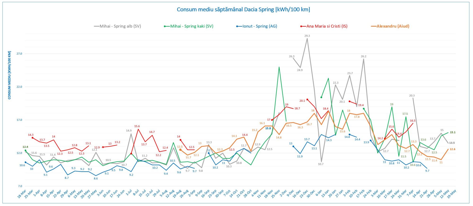 Dintre cei aproape 19.000 proprietari de Spring din România șapte colegi s-au alăturat începând din octombrie 2021 proiectului Electromobilitate, cu dorința de a ne împărtăși bucuriile, necazurile și costurile utilizării zilnice a Spring-ului.