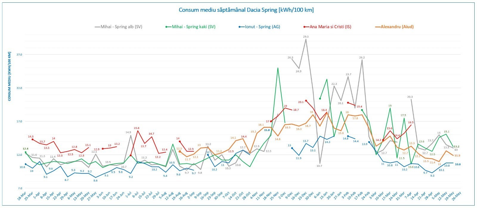Spring-urile sunt folosite 100% urban, cel alb e scadent la revizia de 3 ani. Cel kaki e folosit de soție în locul Sandero, care a fost donat unui alt membru de familie.