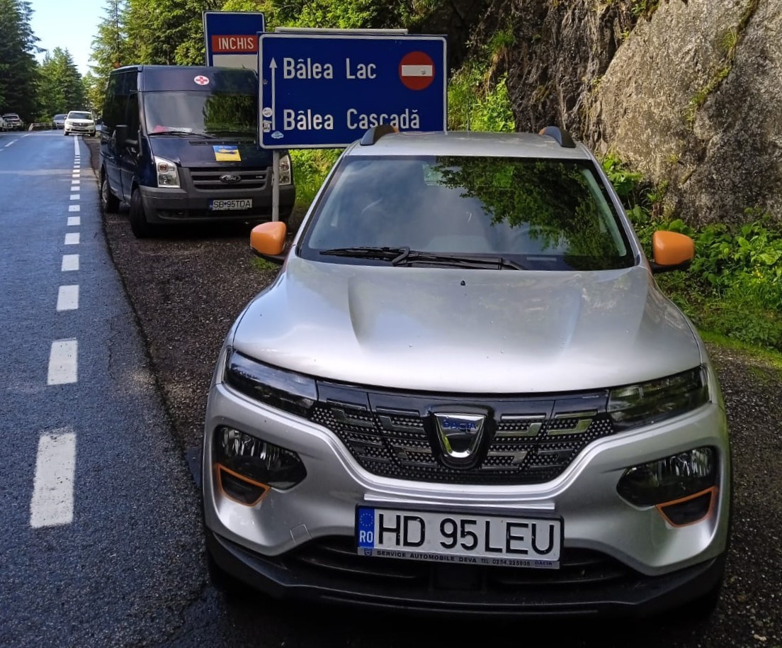 Aflat la mai puțin de 600 km de pragul bornei de 35.000 cu Dacia Spring, Marcel ne-a trimis câteva imagini de la Bâlea Cascadă, trecătoarea peste Carpați fiind încă închisă cu câteva zile în urmă, asa cum se vede pe panoul din spatele mașinii.