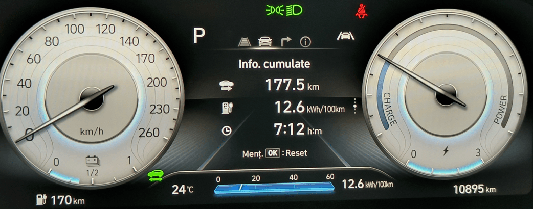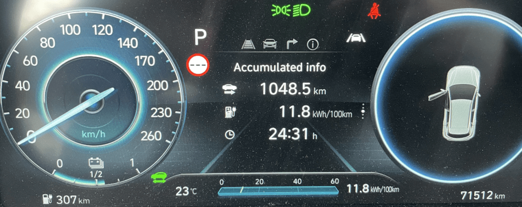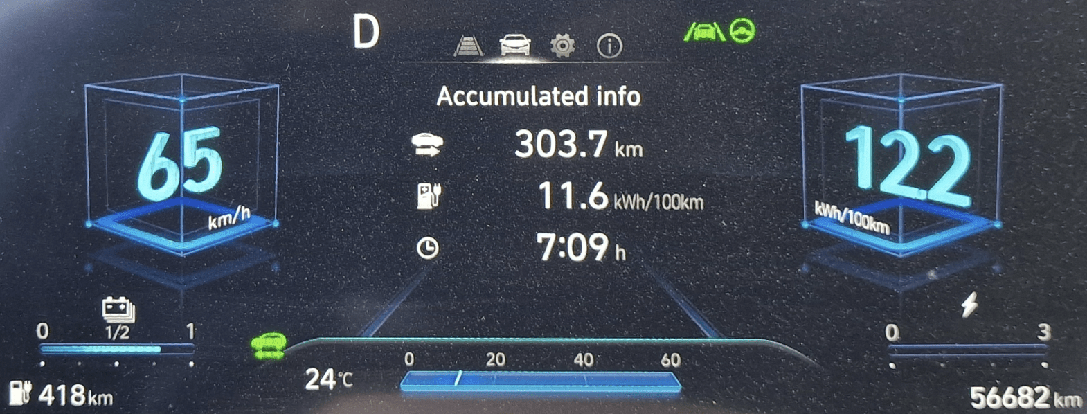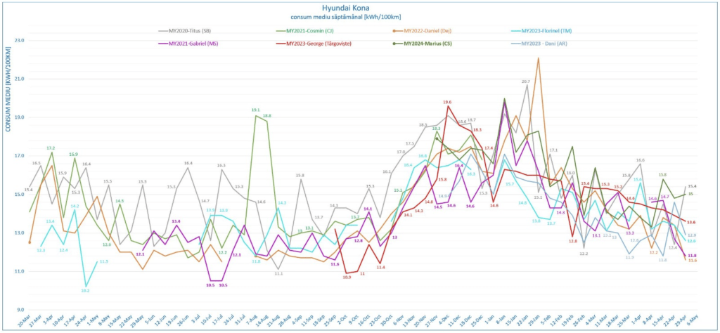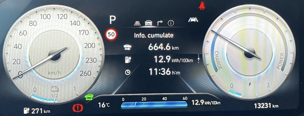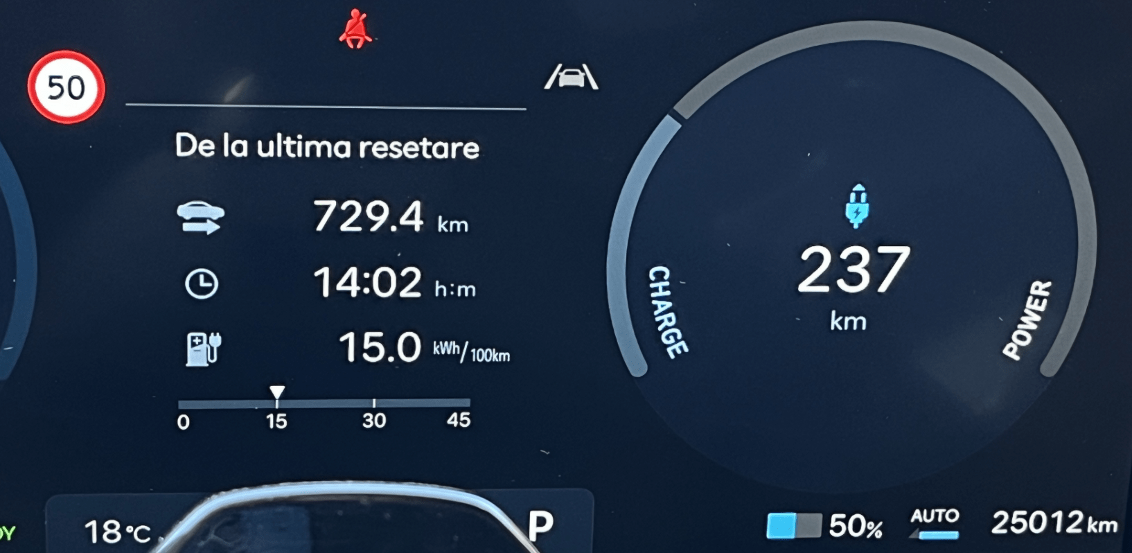 Am parcurs în această săptămână 1070 km. Consumul mediu general a fost de 13,6 kWh/100 km, cu 11,9 kWh/100 km pe ultimii 320 km.