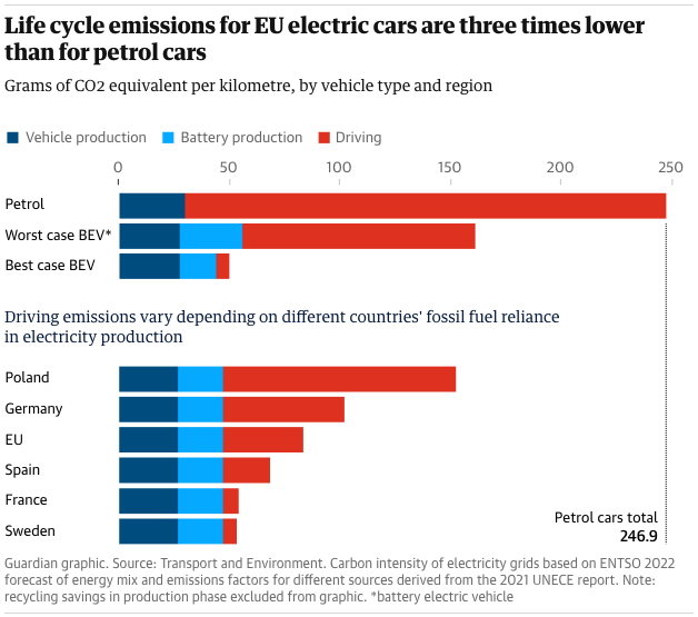 Curios am cerut celor de la Hyundai sa-mi spună care e amprenta de CO2 a #koniței la momentul ridicării de la dealer. Evident nu am un răspuns încă, dar voi încerca să-l obțin. Până la un calcul bazat pe informații obținute în mod independent avem un articol din care să ne extragem datele necesare. Graficul de mai jos este elocvent: