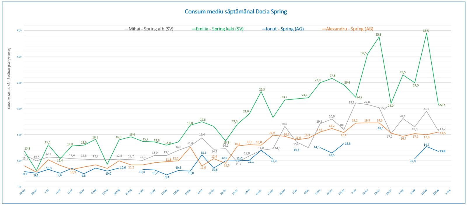 Pentru o clarificare ne ajută faptul că Spring afișează viteza medie la bord și Alex este unul din colegii foarte interesați de documentarea și compararea acestui parametru.