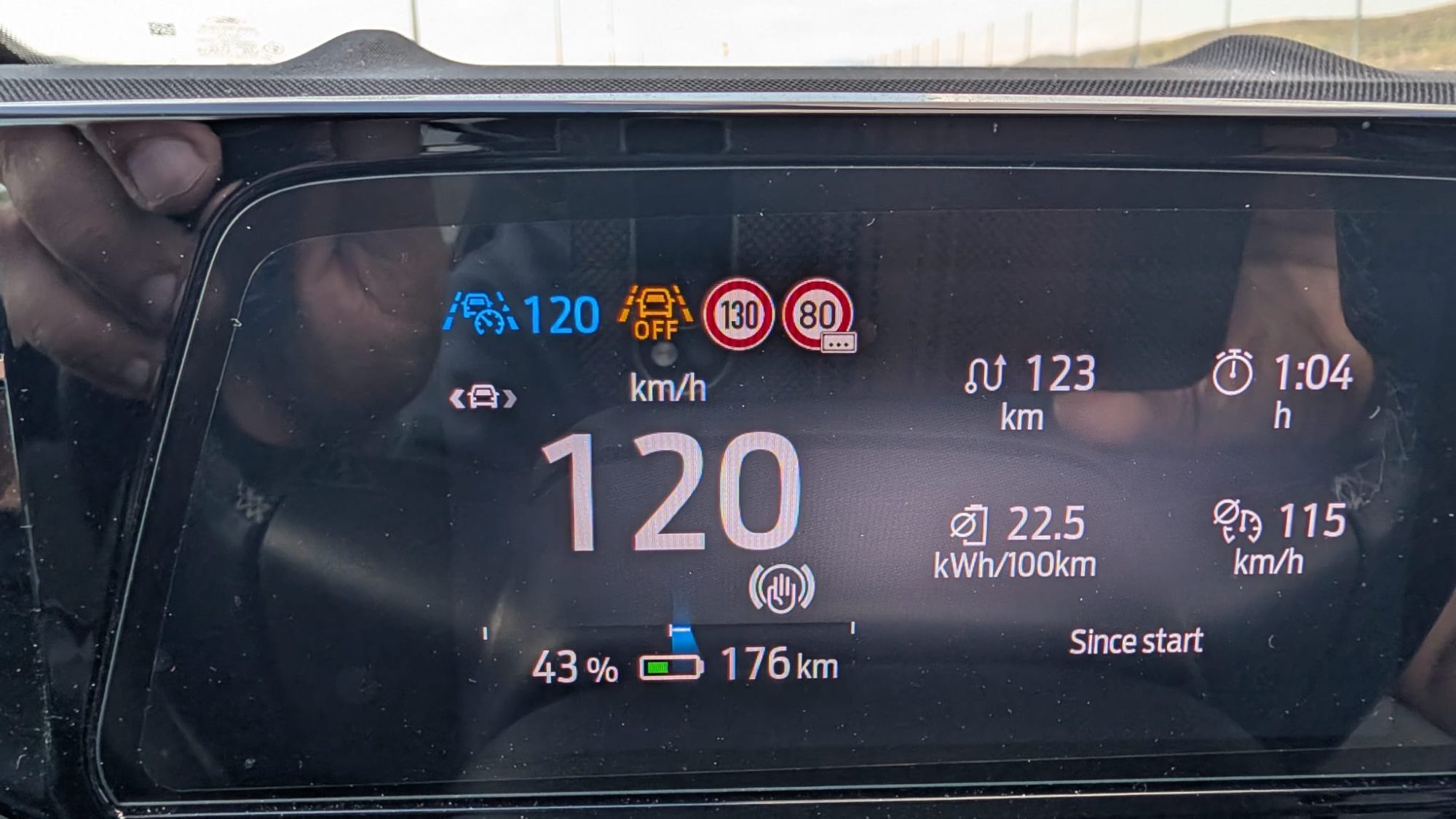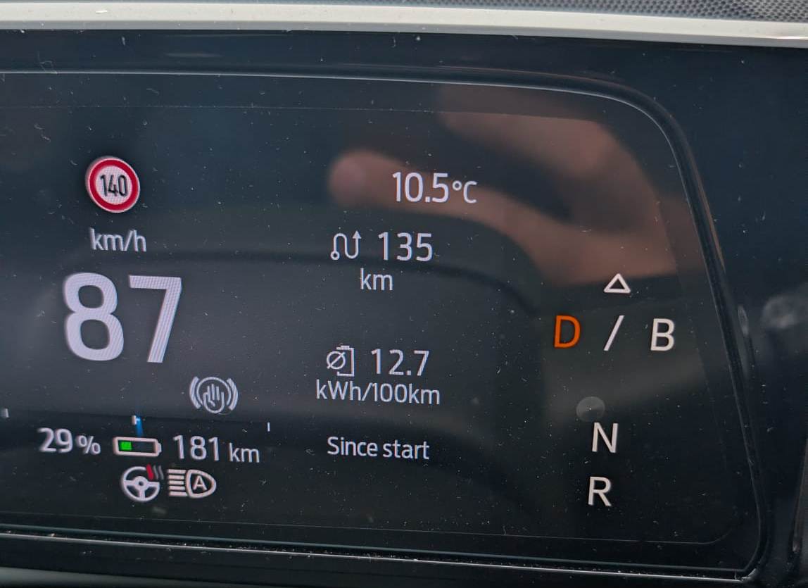 După încărcarea de la Sibiu, profitând de autostrada foarte liberă, așa cum nu am văzut-o vreodată, am zis să testăm consumul la 130 km/h GPS, 133 pe cruise control, excepție fiind nodurile de la Sebeș și Turda unde viteza a fost mai mică.