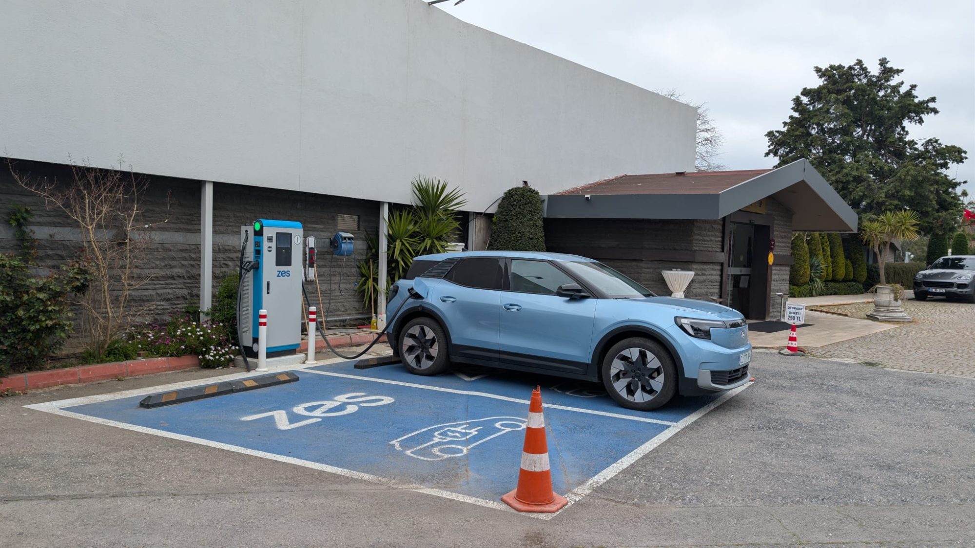 Deplasarea de a doua zi a fost conform așteptărilor, până când, în Turcia, fiind un pic surprins de viteza cu care scădea autonomia, pe autostradă, am zis să încărcăm, pentru că oricum doream să parcăm mașina la hotel cu SOC suficient.