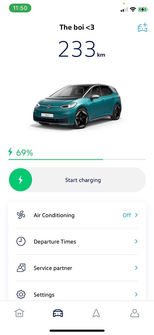Stația primită din partea VW (ID Charger 7,4 kW), setată la 3,7 kW (16 A) mi-a venit în ajutor de câteva ori, însă nu am încărcat mai mult de 50 % din baterie, iar uneori doar 10 %, cât să ajung la o stație de încărcare din oraș.