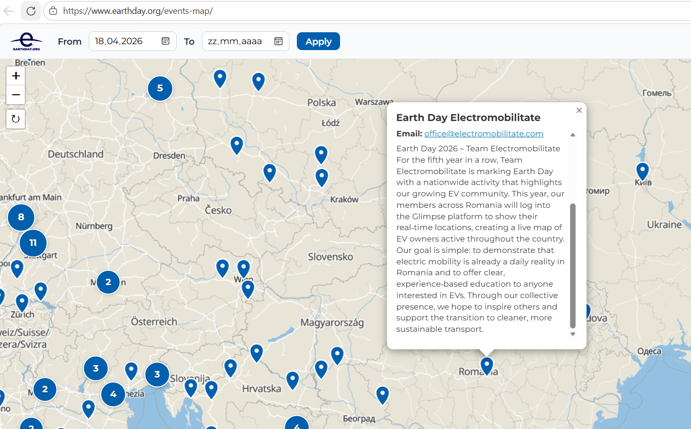 În seria evenimentelor organizate de echipa proiectului Electromobilitate, cele dedicate pentru Ziua Pământului au o semnificație specială și sunt aliniate la mișcarea globală Earth Day.
