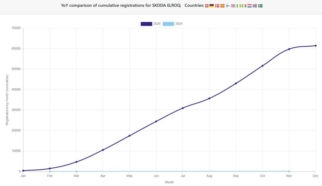 Elroq, cu peste 61.000 exemplare înmatriculate în Europa de vest în primul an, poate fi considerat un succes exceptional ocupând locul 2.