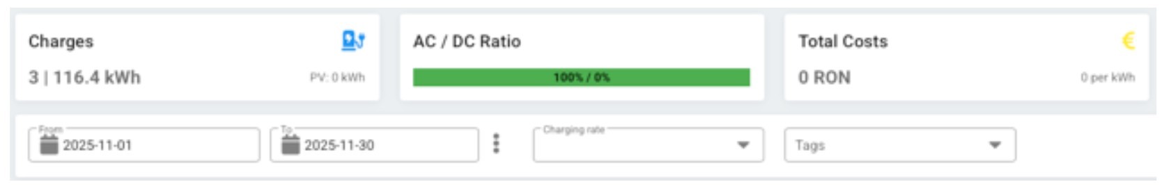 Total încărcări, raport AC/DC și cost total:
