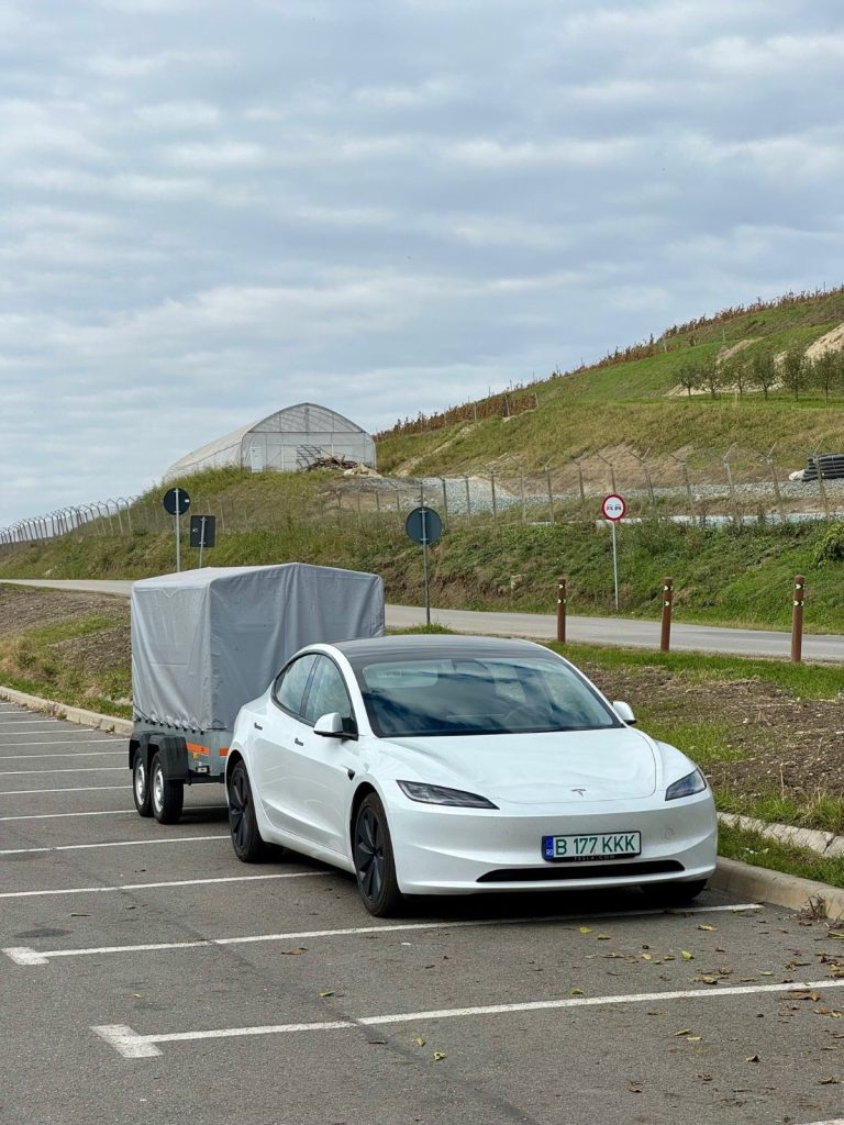 Consumul a fost mare, dar Model 3 Dual Motor s-a comportat exemplar în tractarea remorcii. Puterea disponibilă te face să nici nu simți că ai ceva agățat după tine și îți amintești doar atunci când arunci câte o privire în oglinzile retrovizoare pentru a te asigura.