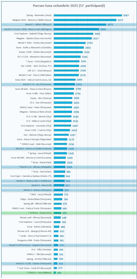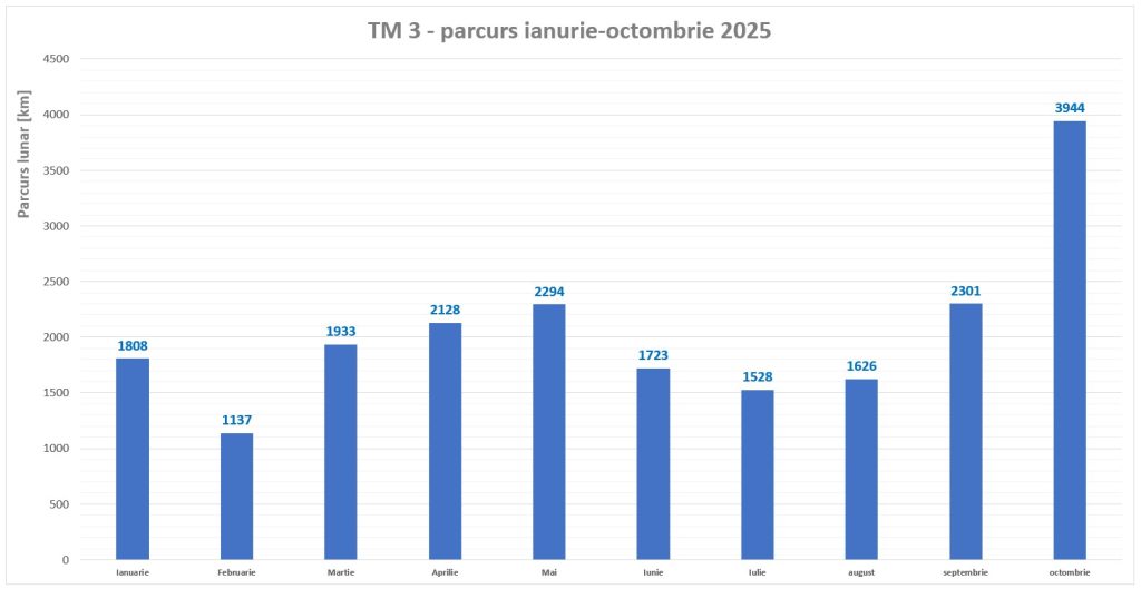 În luna Octombrie Tesla a fost cea mai „alergată” mașină a familiei. A parcurs 1851 km cu un consum de 19,9 kWh/100 km.